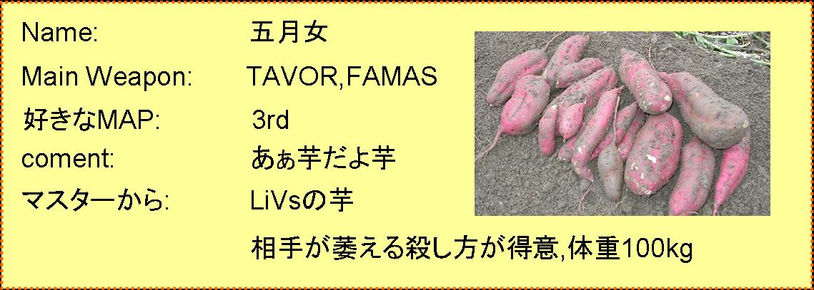 芋とめとの愛称でみんなに親しまれている。しかし,彼の温厚さには癒される。よく話を聞いてくれる。よく深夜一緒にplayしている